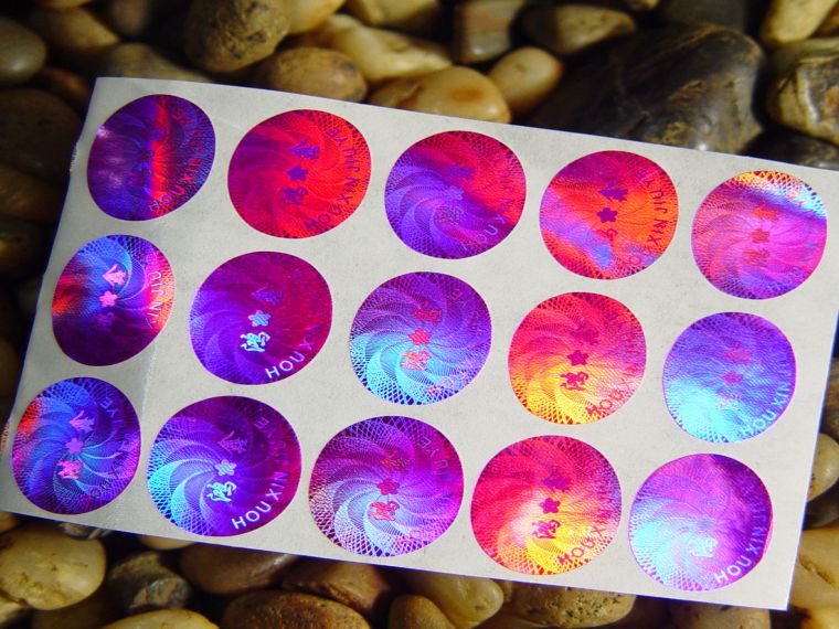 激光防伪标签特性:激光防伪标签,色彩绚丽,按客人要求图案和内容,激光刻版制作,从不同角度有不同的色彩,金属效果,光泽四射,不可仿制;